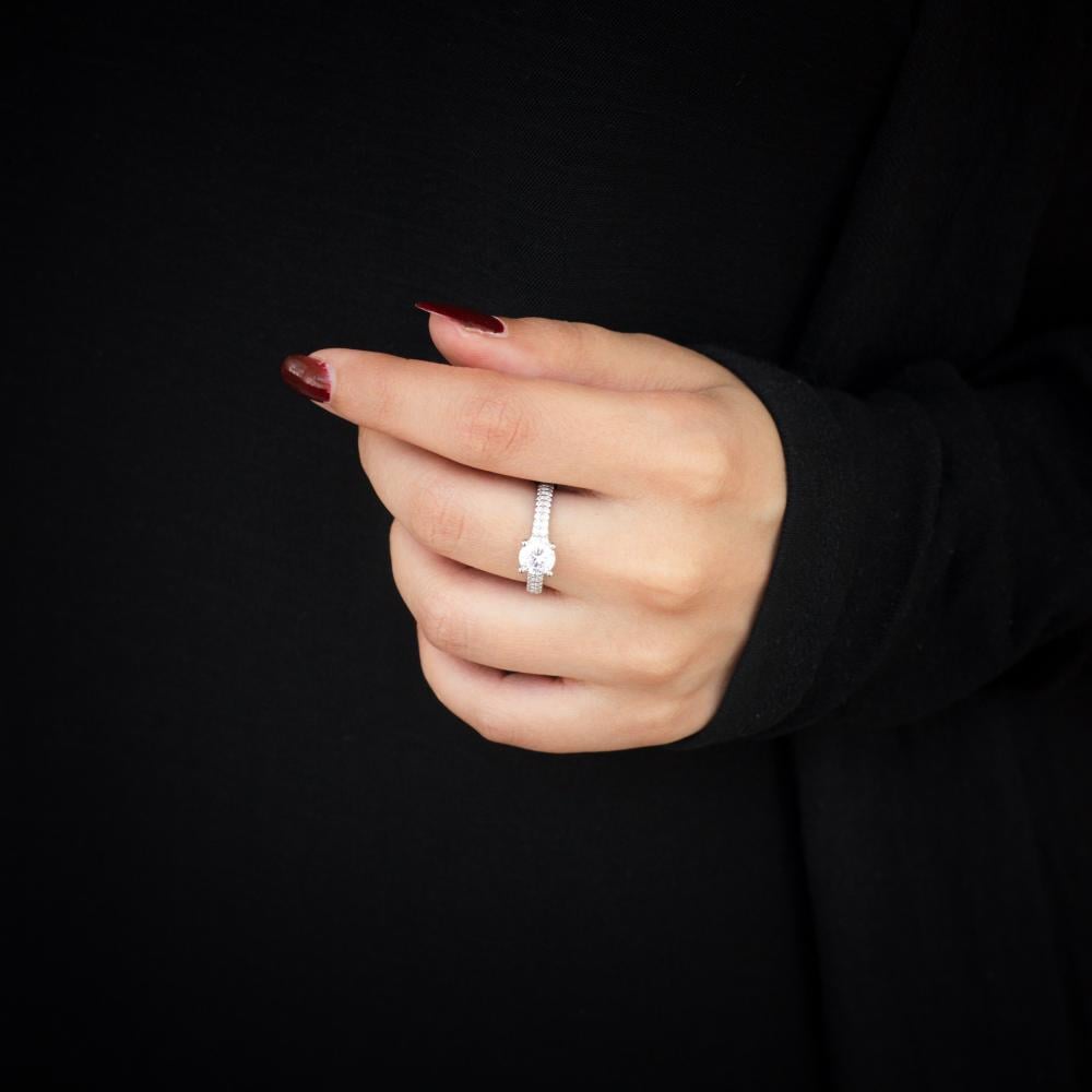 خاتم فضة نسائي بحجر زركون انيق T-01