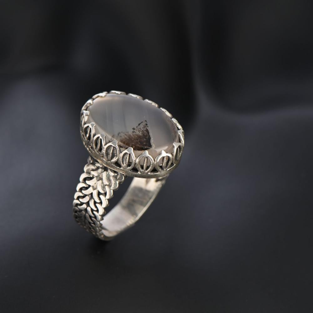 خاتم فضه بعقيق ابيض مشجر Z-04